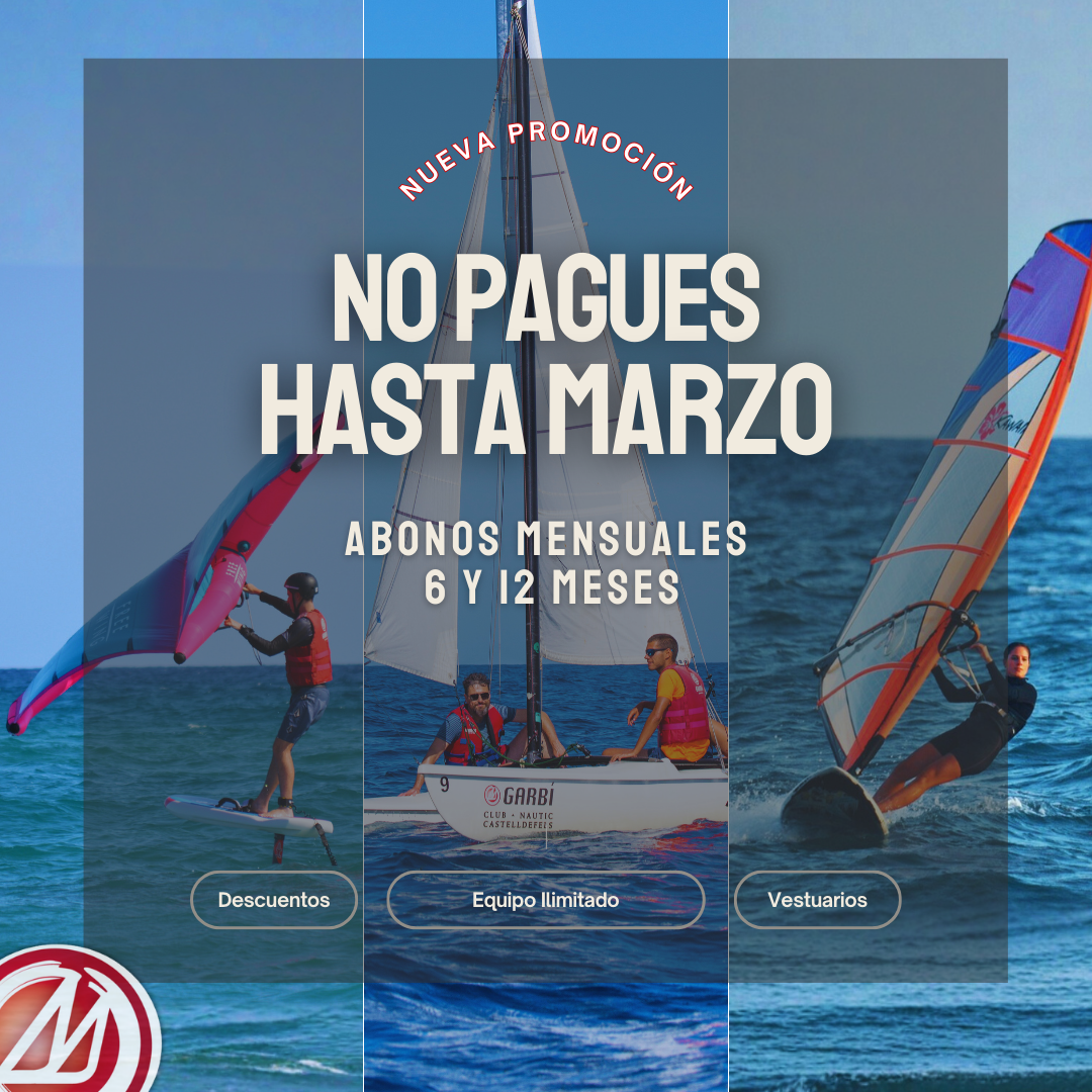 Con esta Tarifa Plana tienes acceso al material (tablas, velas y/o embarcaciones), 50% de descuento en todos los cursos, neopreno y acceso a vestuarios con ducha y taquillas.